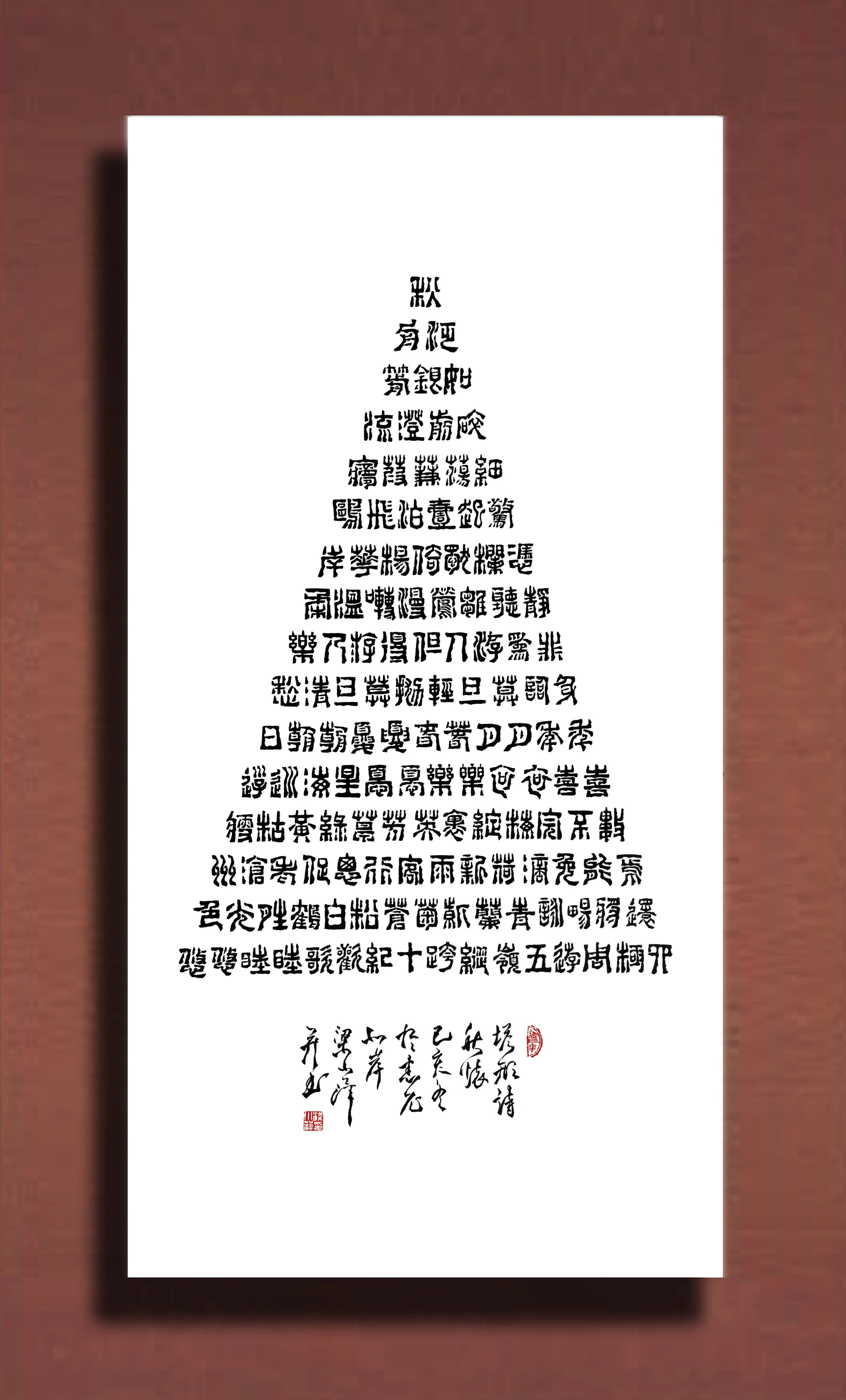 《塔型诗秋怀-梁小萍撰并以梁氏自创篆刻体书之》