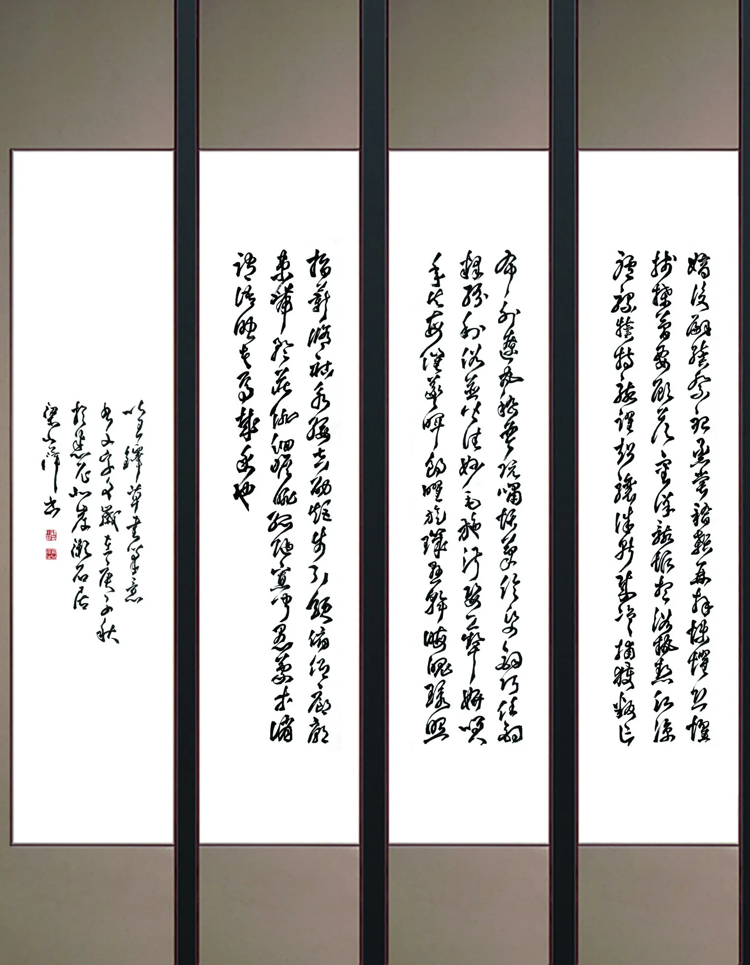 原作尺寸:135厘米 x 35厘米 x22屏