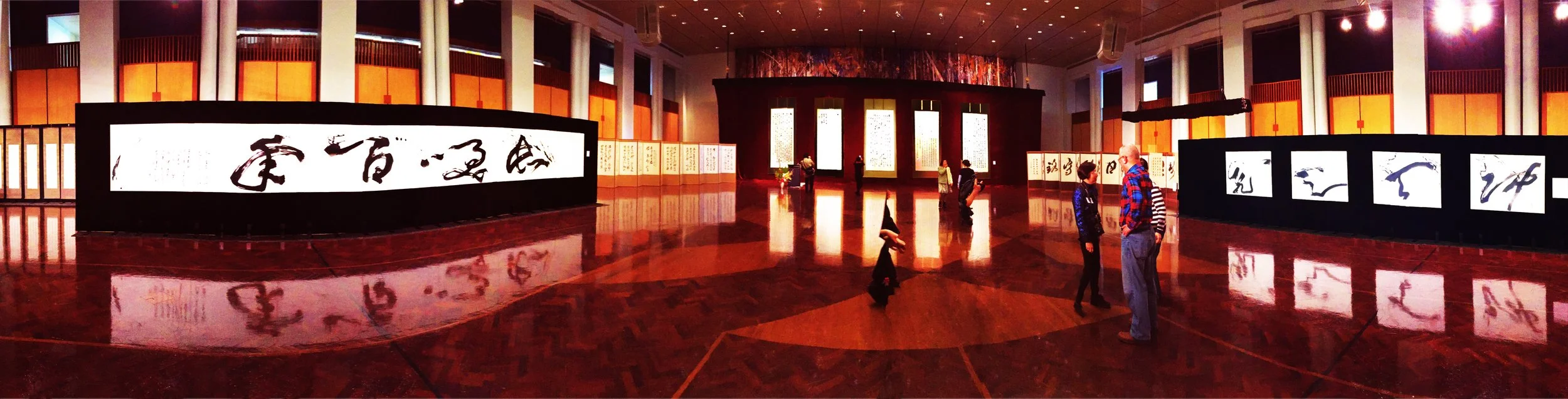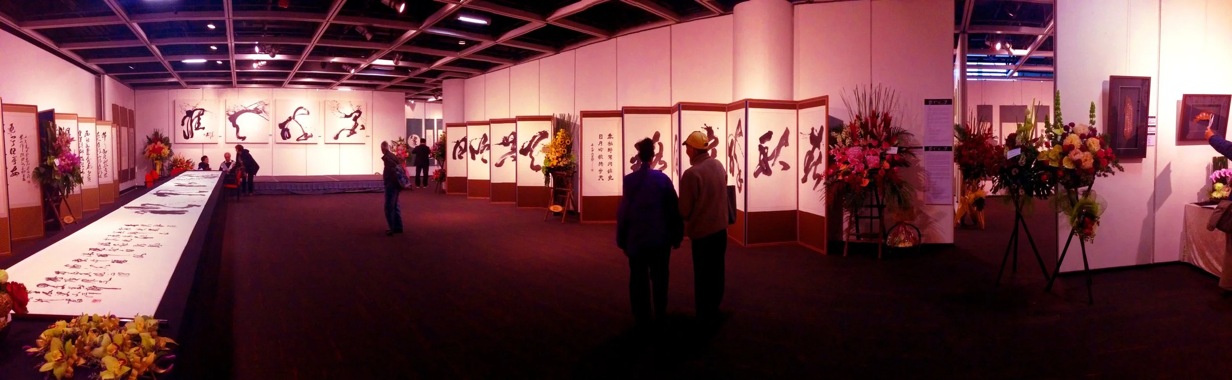澳洲联邦国会大厦“冲天之飞-梁小萍自撰诗联书法艺术展览 暨 梁小萍女史执管五十周年庆典”的点题之作《冲天之飞》展览现场。