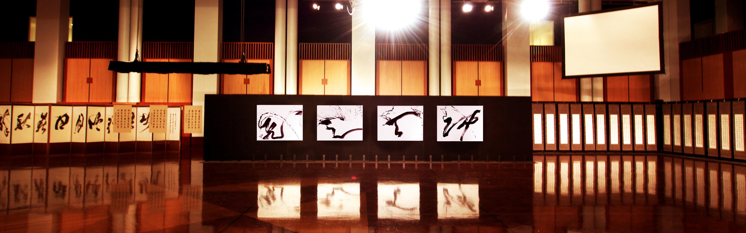 ⑴ 2007年,澳洲新南威尔士州议会大厦订购首帧亚洲艺术作品,它就是碑林中的作品《虹》,由“水墨芭蕾”与自撰对联的传统行草组成。