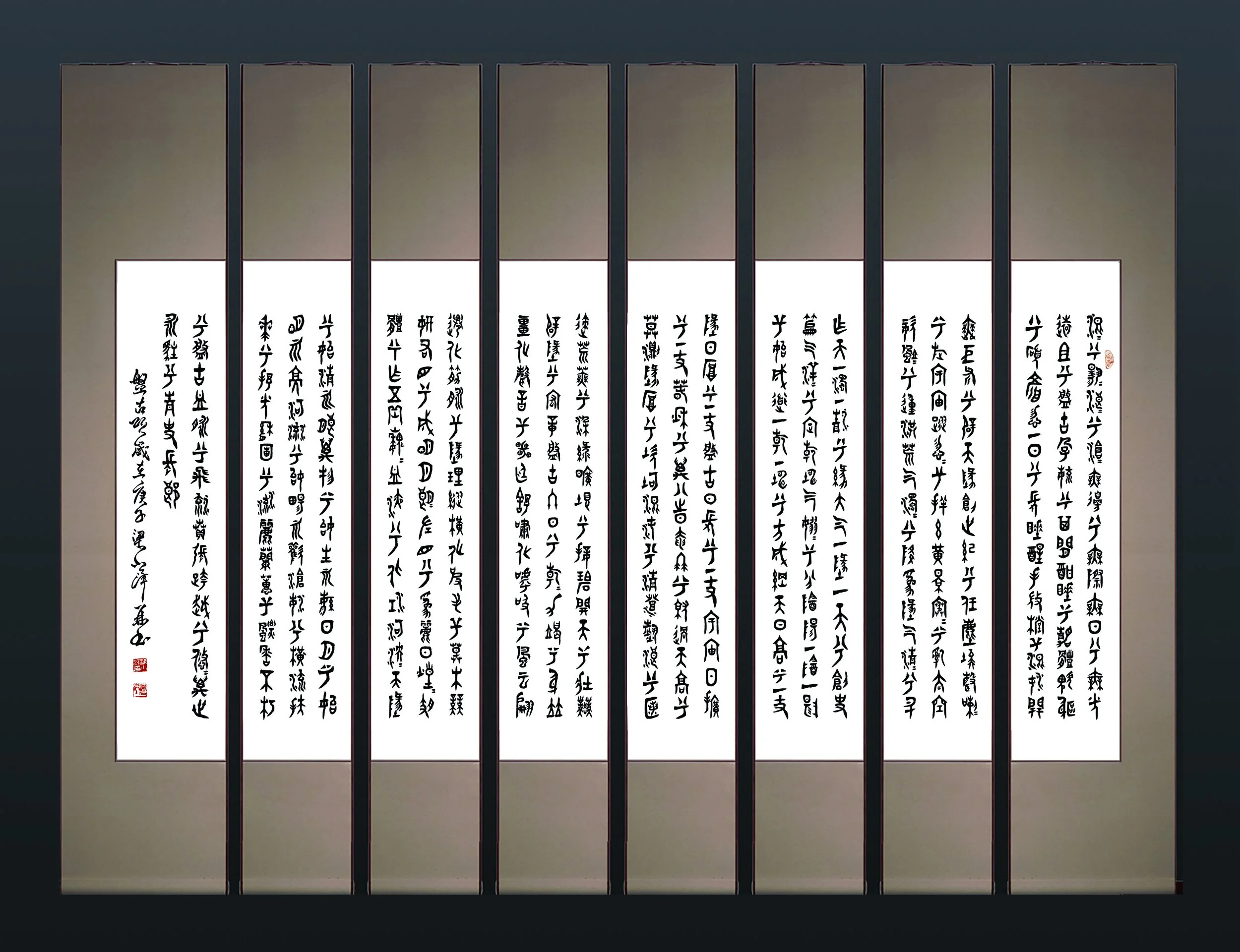 撰于2004年,并于2020年以金文书之,使其形式和内容同含古韵,还合于大冶铜都。史上鲜见自撰自书古长诗书法。