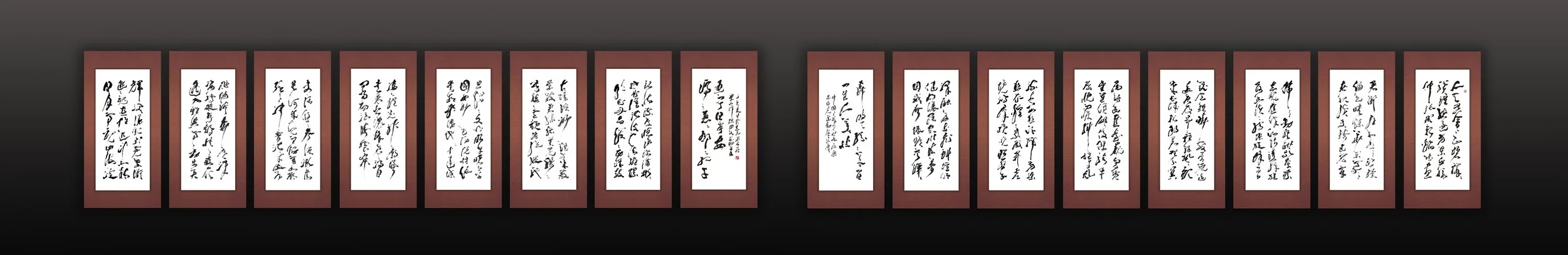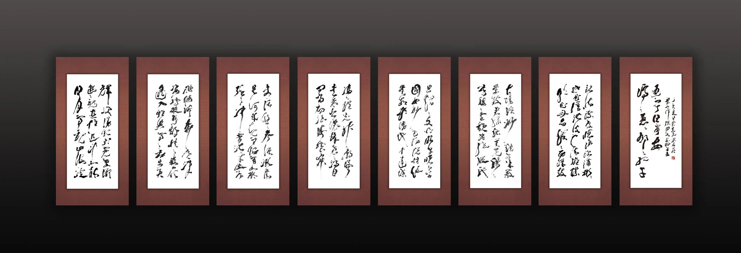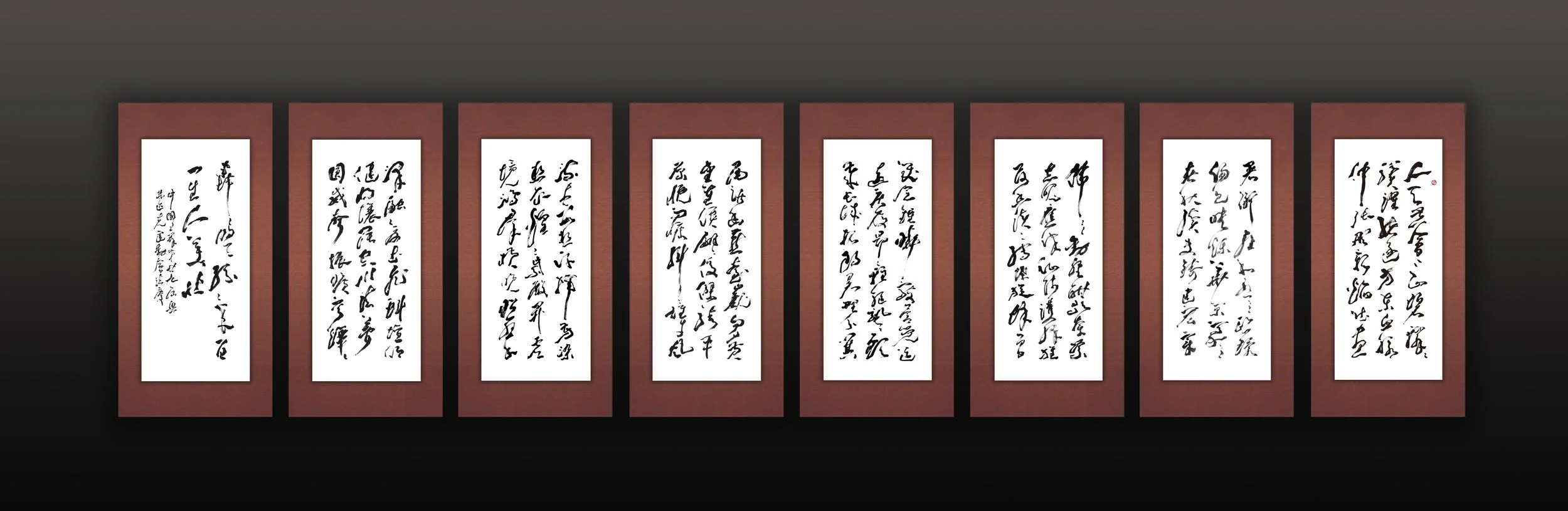 纸本原作《梁小萍自撰自书奥运回文史诗 I-384字奥运回文长联》大草屏风系列展出场景