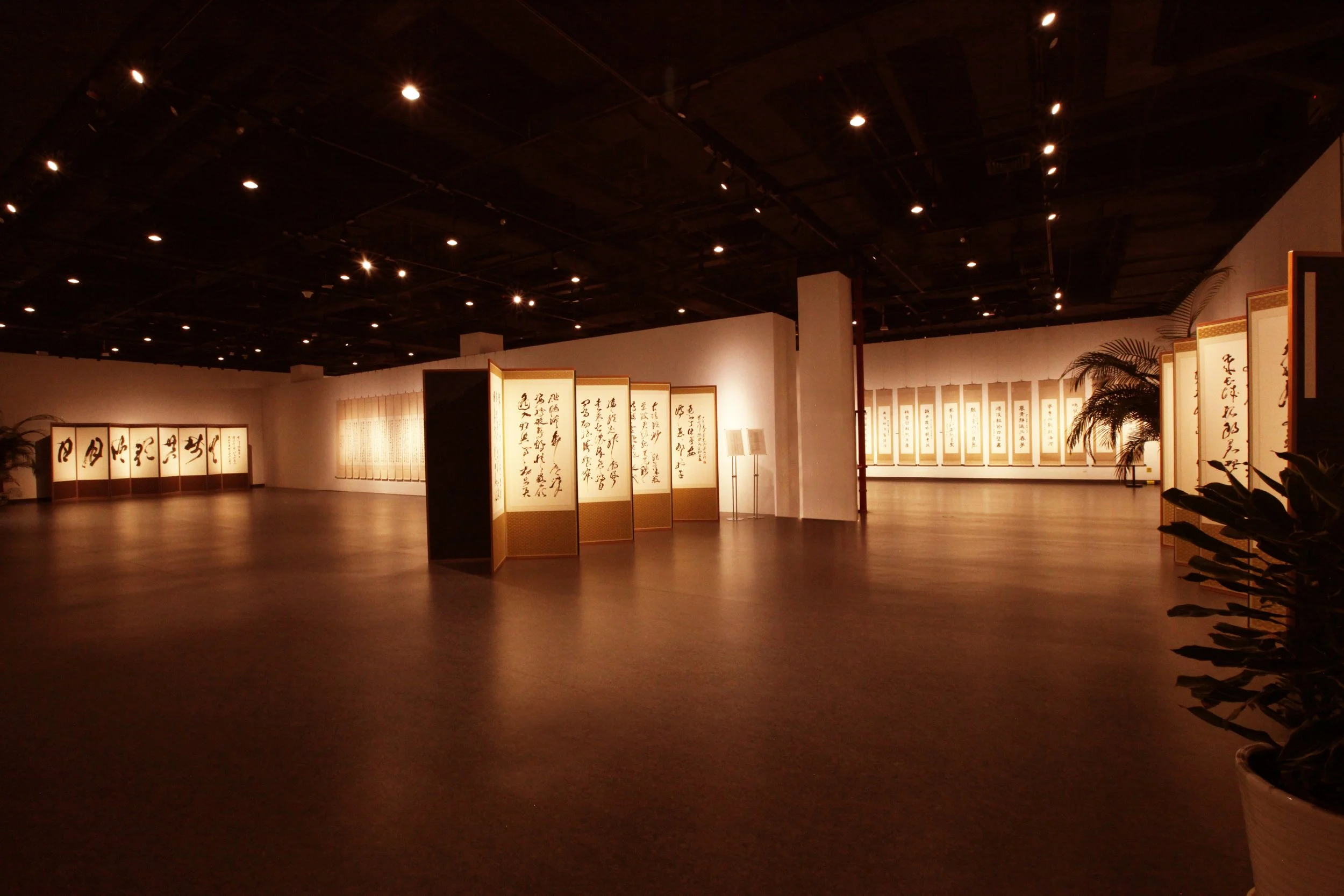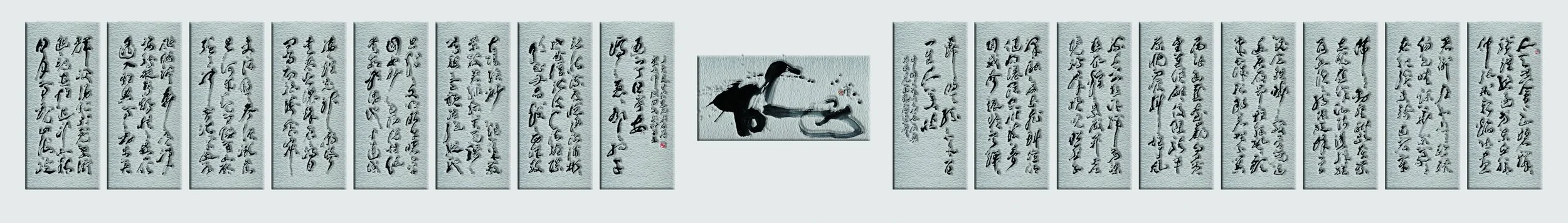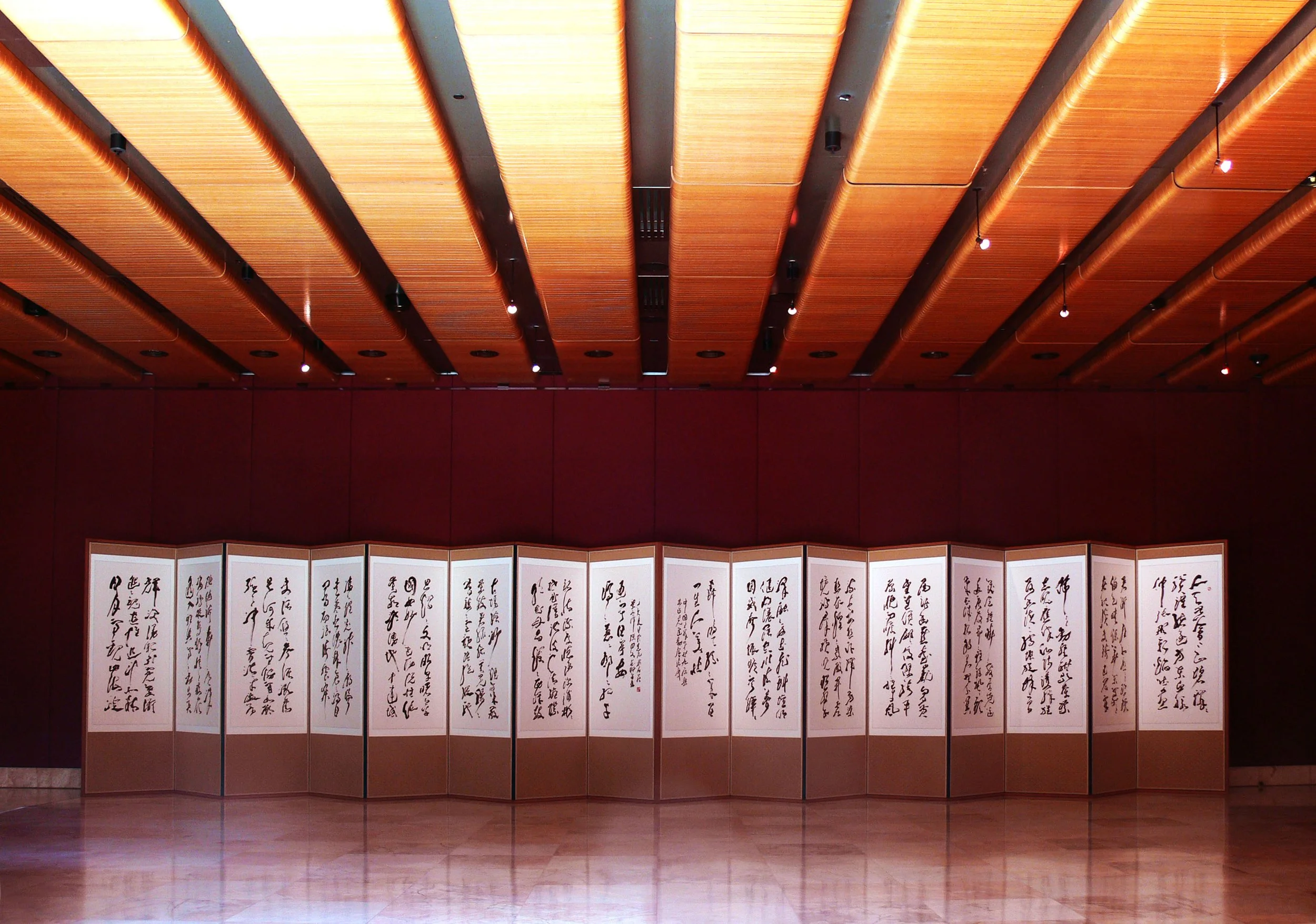 纸本原作《梁小萍自撰自书奥运回文史诗 I-384字奥运回文长联》大草屏风系列展出场景