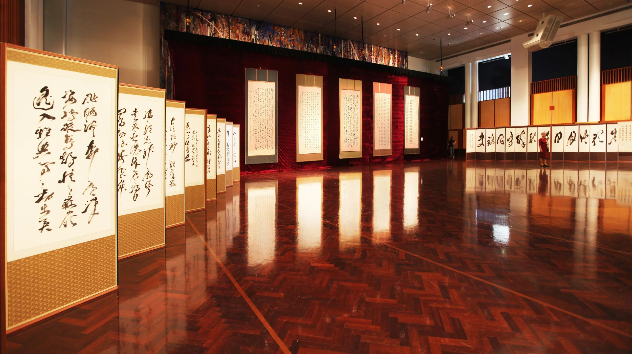 《澳洲献给2008北京奥运国礼 — 梁小萍自撰自书奥运回文史诗 》书法纸本原作屏风系列 展出场景
