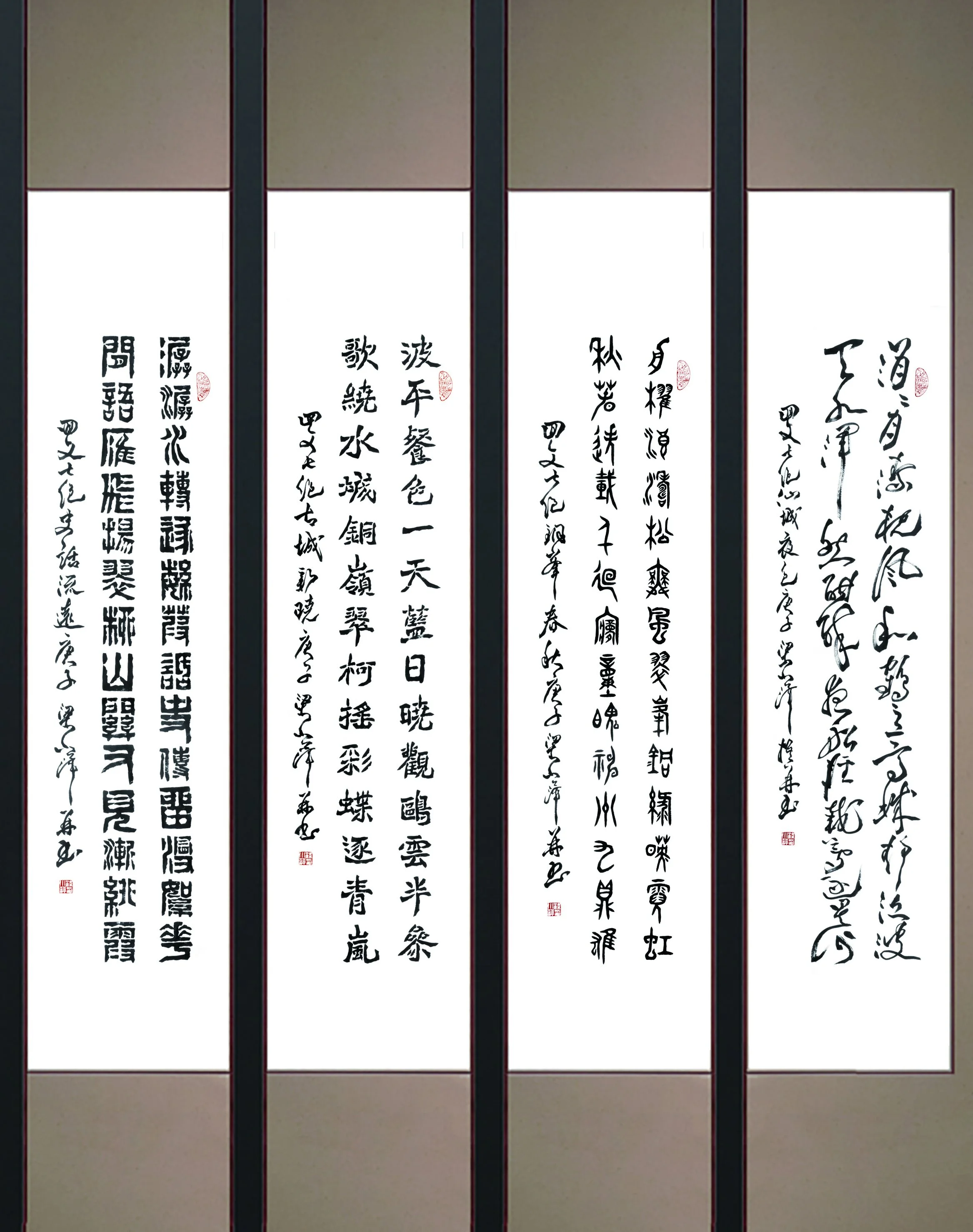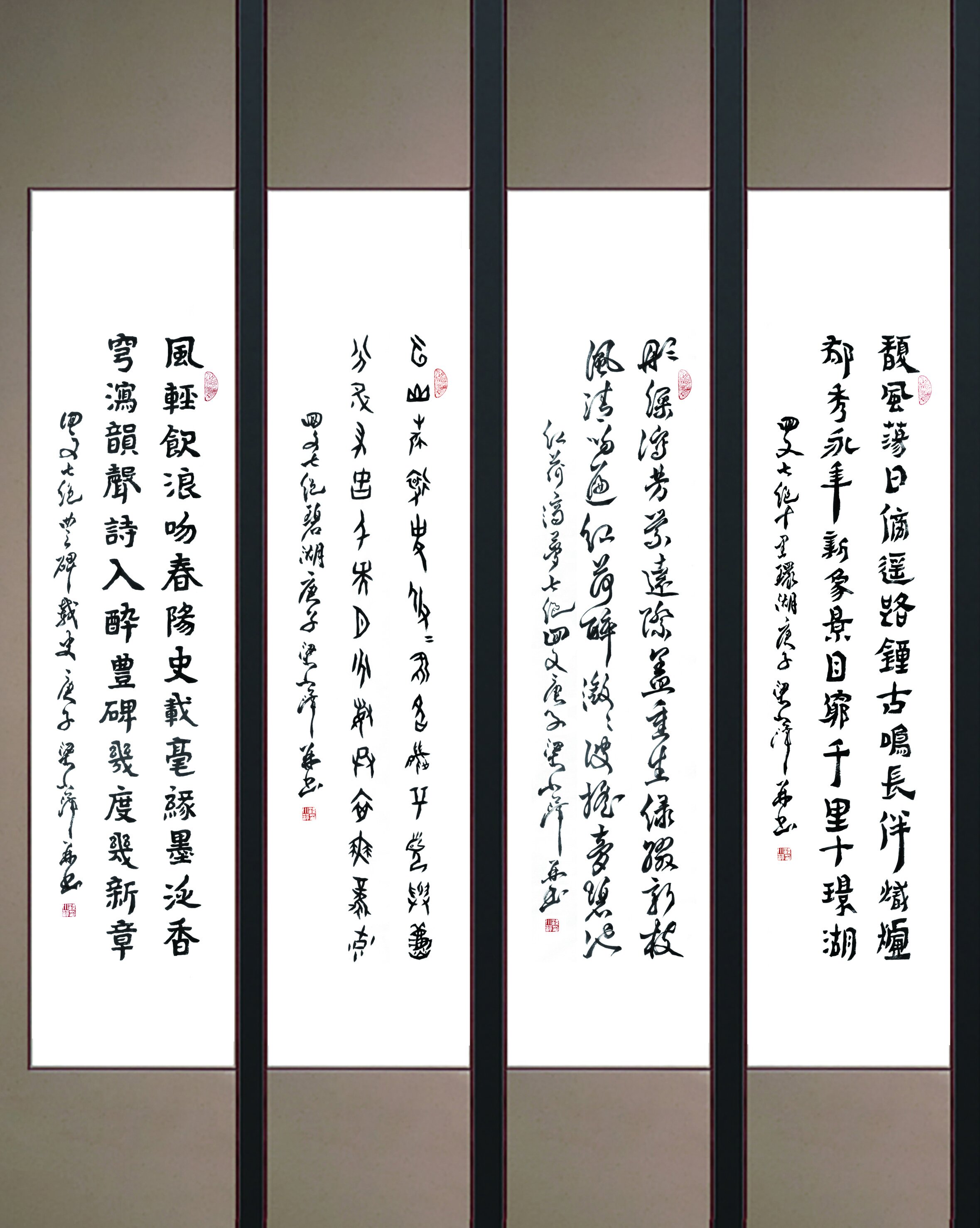 梁小萍八首八体自撰自书回文七绝系列