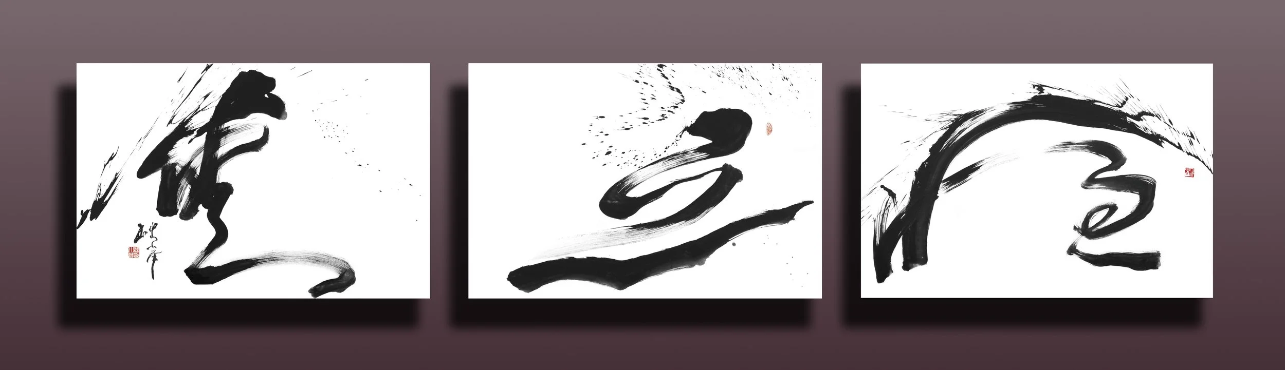 该碑刻原作系列被中国华侨历史博物馆收藏,是该馆举办“飞越时空-梁小萍自撰回文诗联书法展览”的主要展品之一。此系列创于2017年,作为作者创建"水墨芭蕾"现代书体的代表之一。此三帧作品可作为一个系列作品,也可作为三帧独立之作。