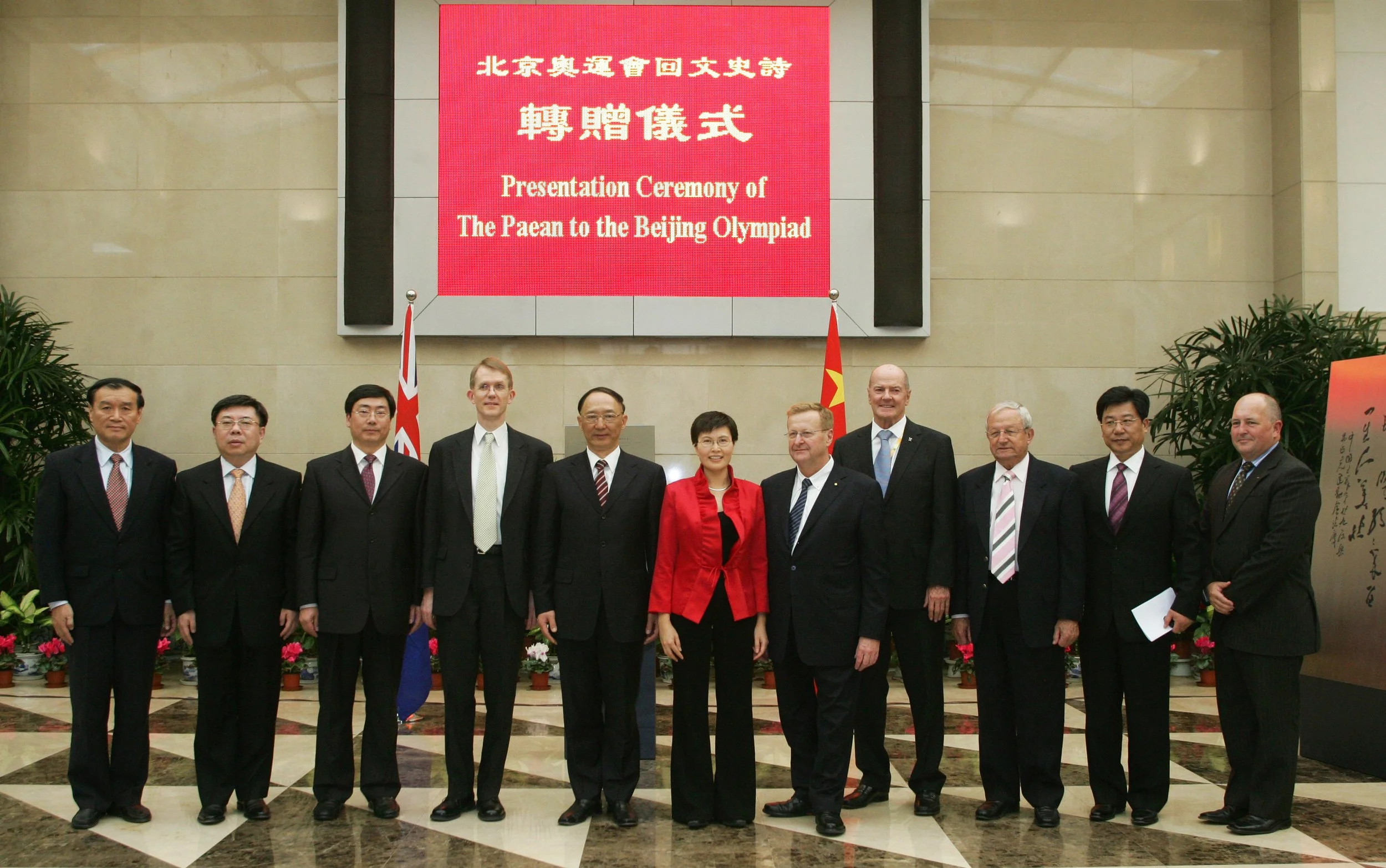左起:中国驻悉尼总领事邱绍芳、下议会议长约翰 · 阿基利纳长( John Aquilina )、作者、上议会议长梅雷迪思·伯格曼( Meredith Burgmann )