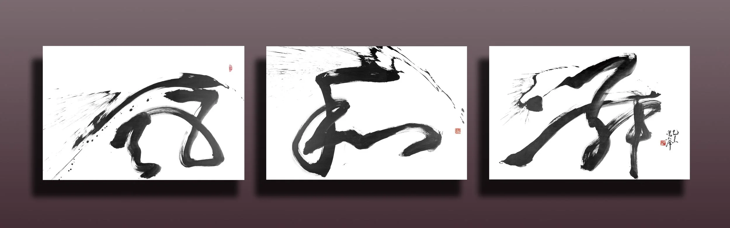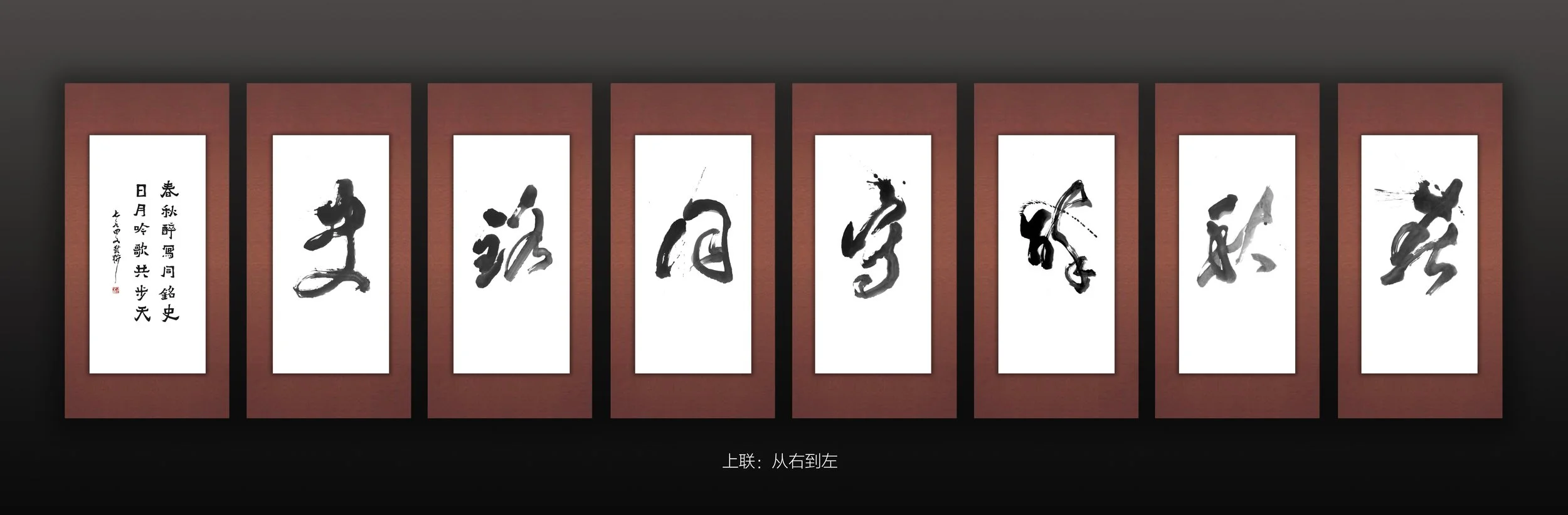 该碑刻原作系列是中国华侨历史博物馆举办“飞越时空-梁小萍自撰回文诗联书法展览”的主要展品之一。此三帧作品创于2017年,是作者创建"水墨芭蕾"现代书体的代表之一,可作为一个系列作品,也可作为三帧独立之作。