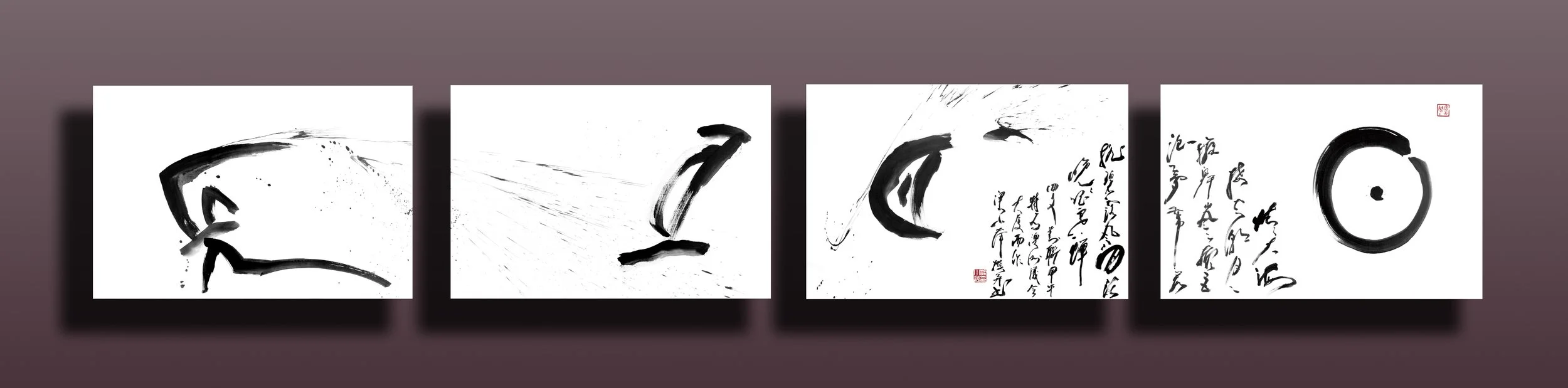 《云山共色》-梁小萍自撰自书回文对联传统书法与自创“水墨芭蕾”现代书法组合系列