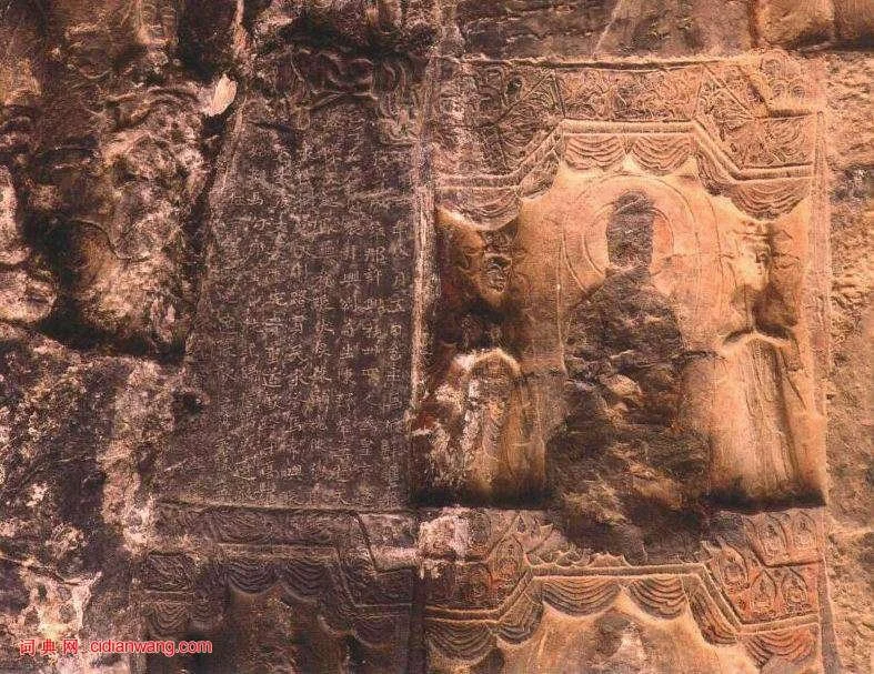 《马振拜造像题记》,全称《马振拜等三十四人为皇帝造像记》,龙门二十品之十二。景明四(503)年八月刻,位居古阳洞顶部。其笔锋凌厉,个性突出,笔意天真,风神别样。