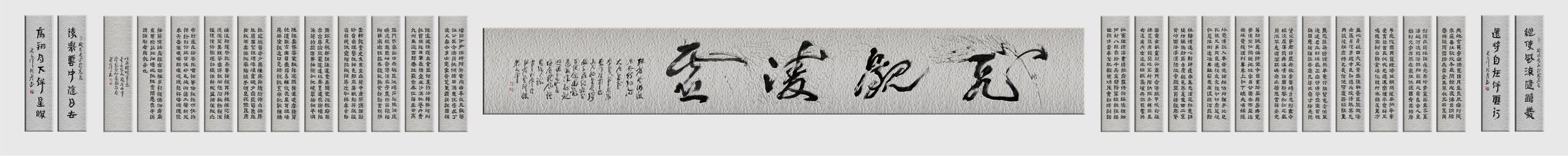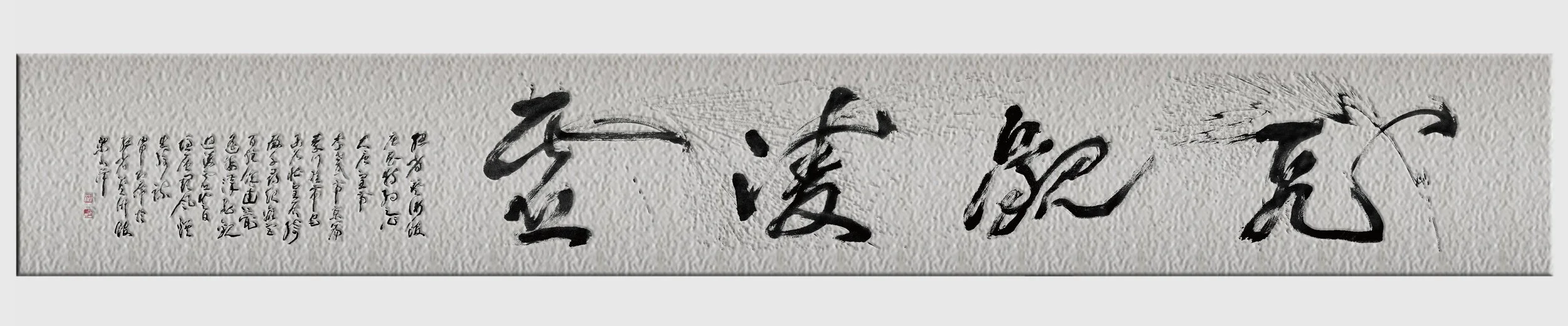 该碑刻源自由著名新南威尔士艺术博物馆和罗浮宫分馆分别拍摄和辑制的艺术片《飞观凌虚-梁小萍自创“水墨芭蕾”现代书法》中的原作,展现了梁氏独创现代书法和传统书法的高超综合艺术。