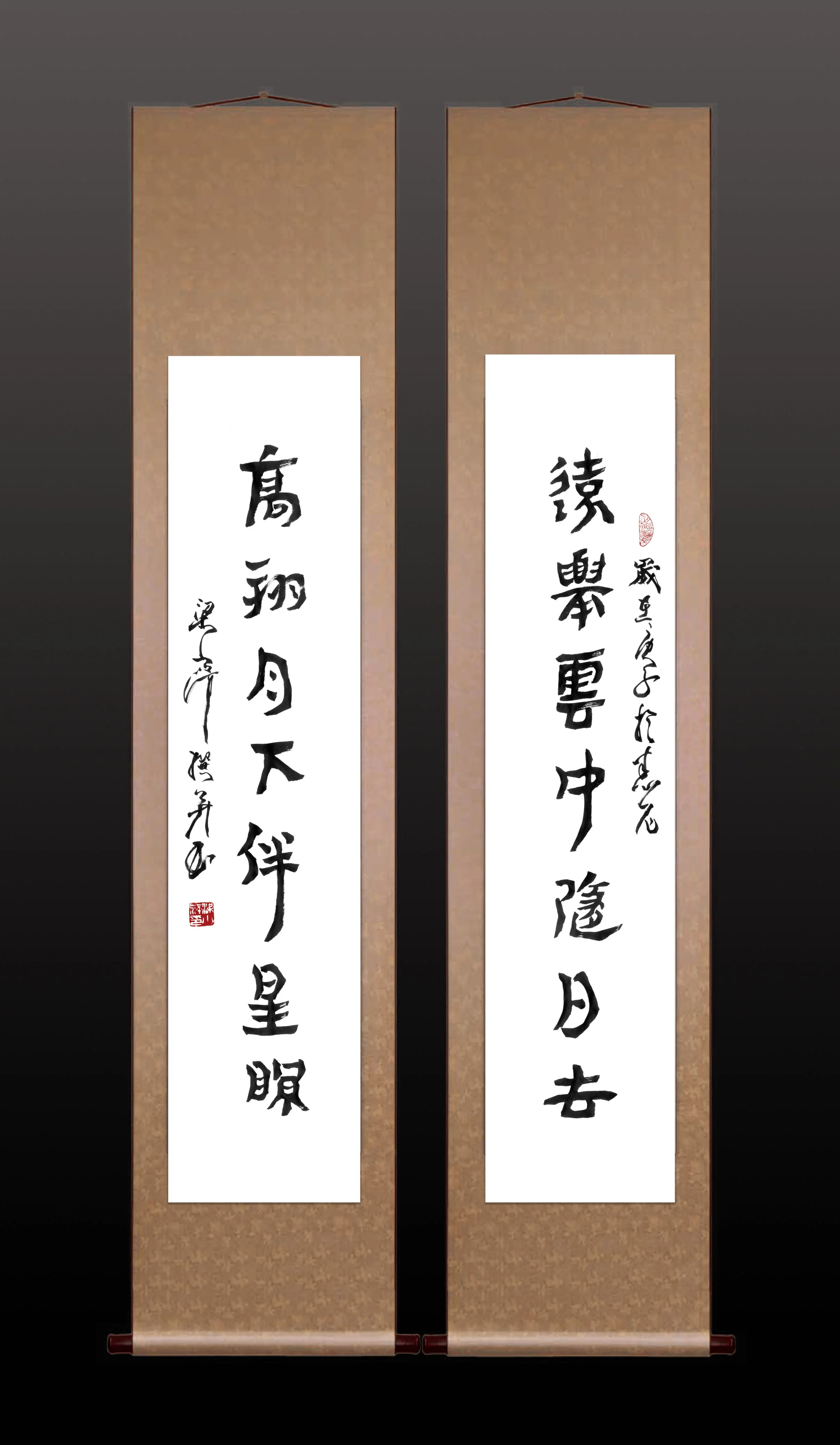 《高翔月下伴星眠》-梁小萍自撰自书对联
