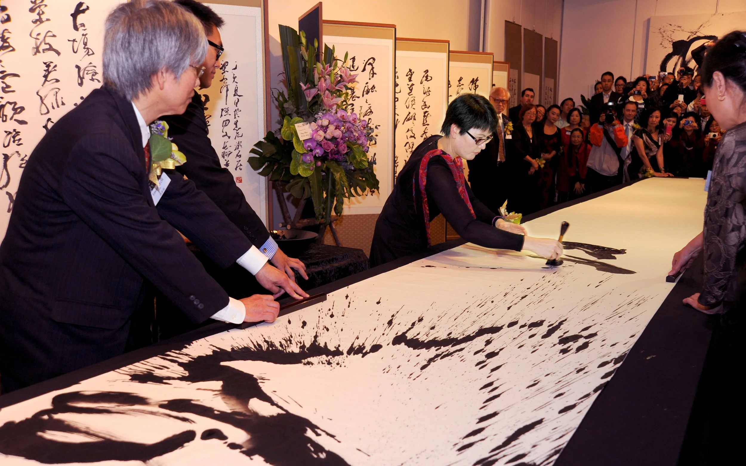 “梁小萍’水墨芭蕾‘十米长卷即席挥毫”