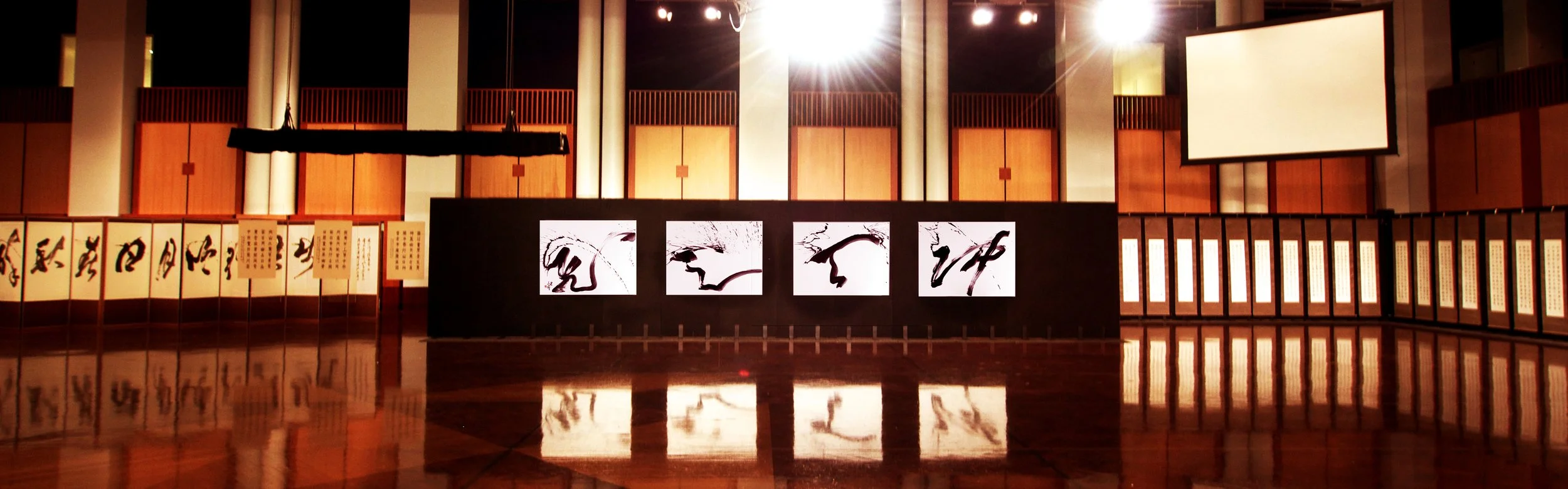 “冲天之飞-梁小萍自撰诗联书法艺术展览”场景。澳洲联邦国会大厦,2014年。