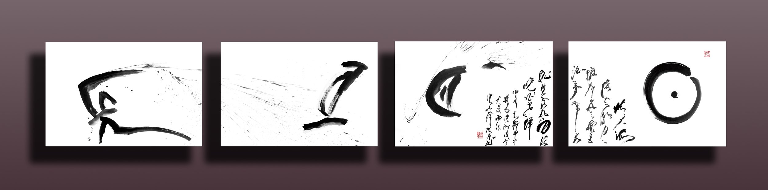 《日月恒长》- 梁小萍自撰自书回文对联和自创“水墨芭蕾”现代书法组合