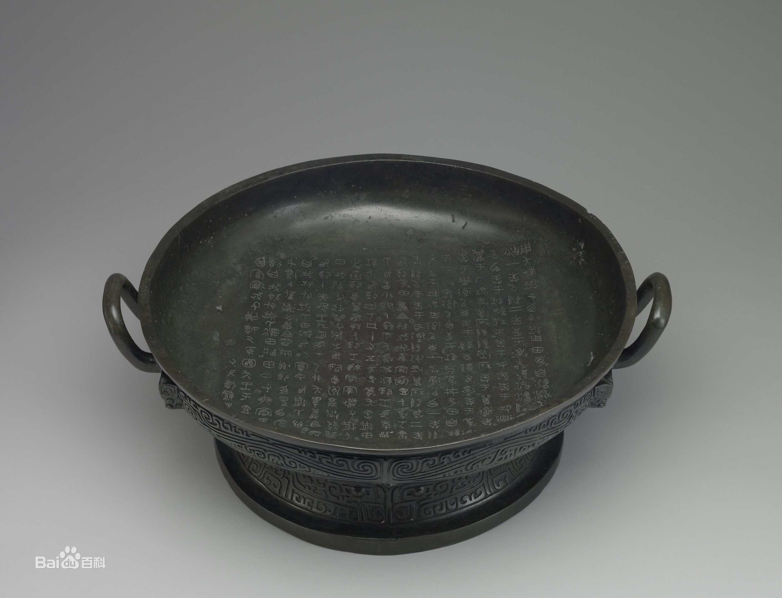 散氏盘也称散盘,是西周厉王年间铸造的青铜器皿,腹内铸有357字金文,是中国最早的土地契约,记录两国之间的土地赔偿、交割的全过程。它是研究西周土地及其管理制度的重要史料。现藏于台北国立故宫博物院。